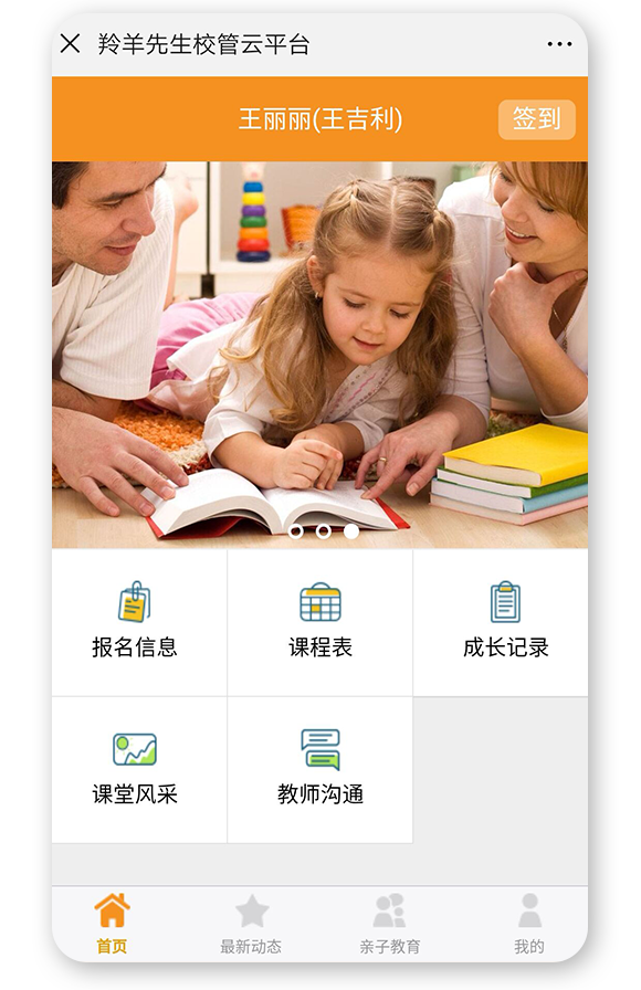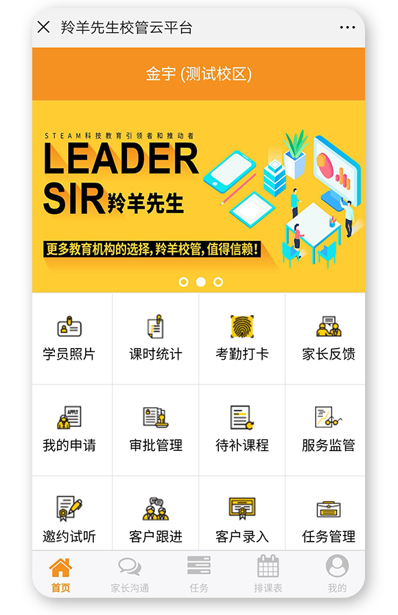 羚羊先生将客户端口分置为老板端、教师端和家长端,确保校区信息实时传递,老板及时了解校区运营情况,而教师与家长紧密结合,课程安排及划课情况实时更新,确保校区做到家校互联,增加客户黏度。